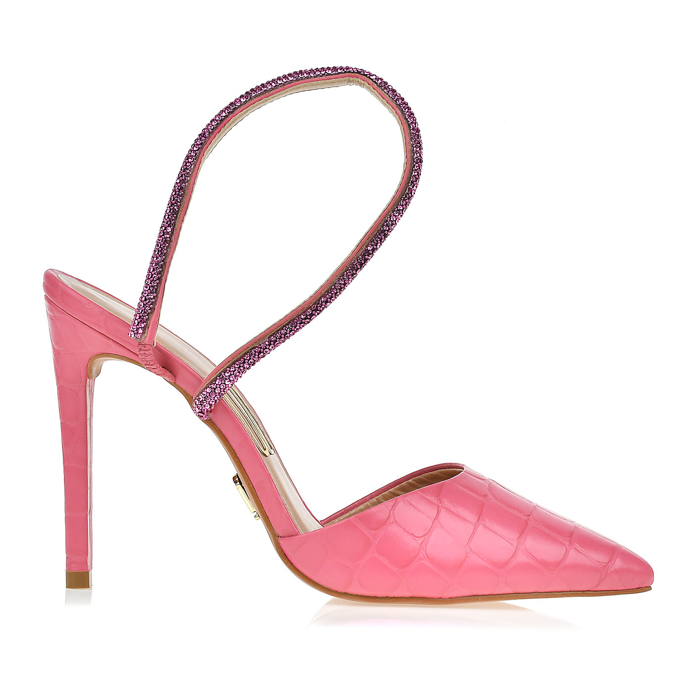 3996 - A16Q715A001726 Slingback Salto Alto Croco Rosa