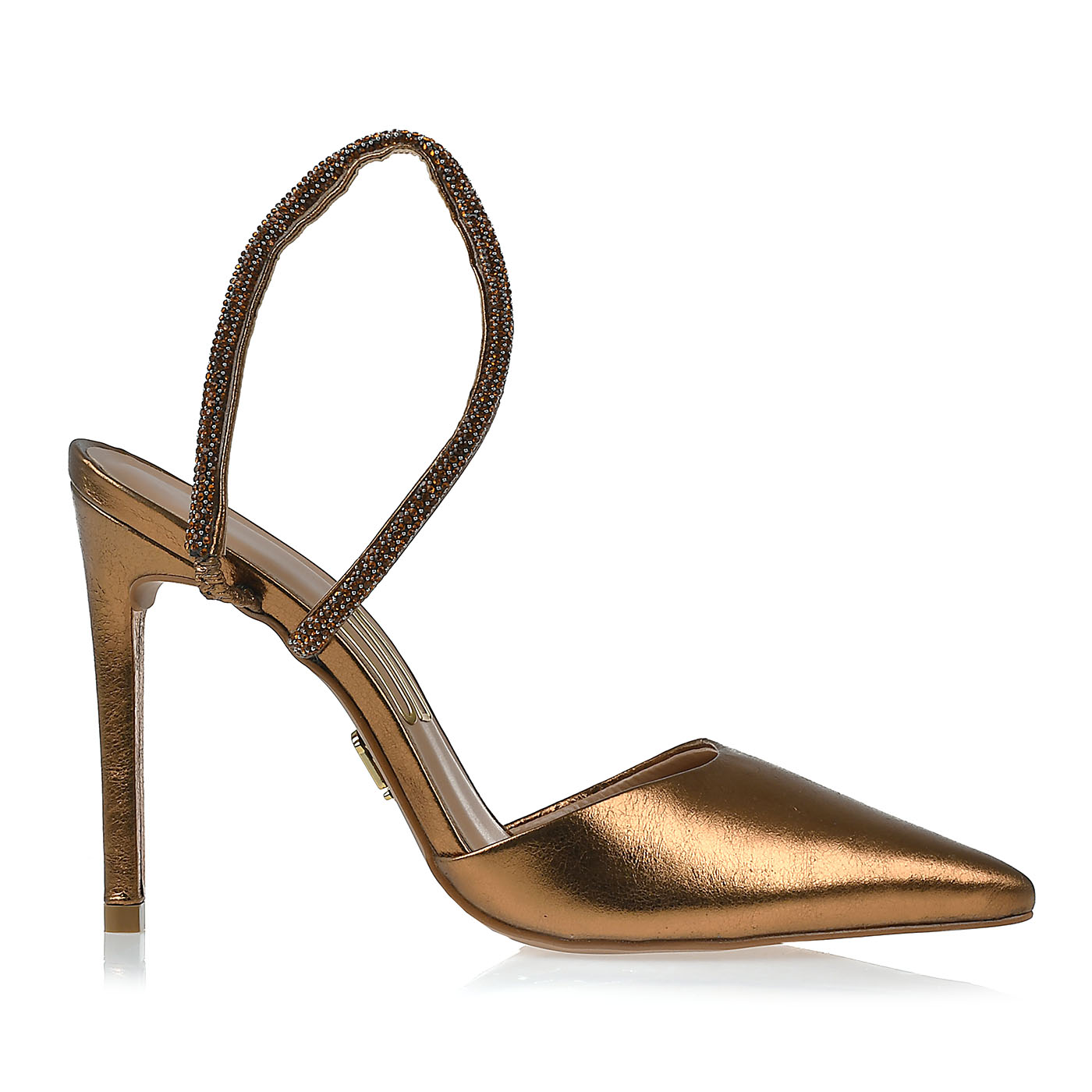4002 - A16Q715A001731 Slingback Salto Alto Metalizado Old Gold